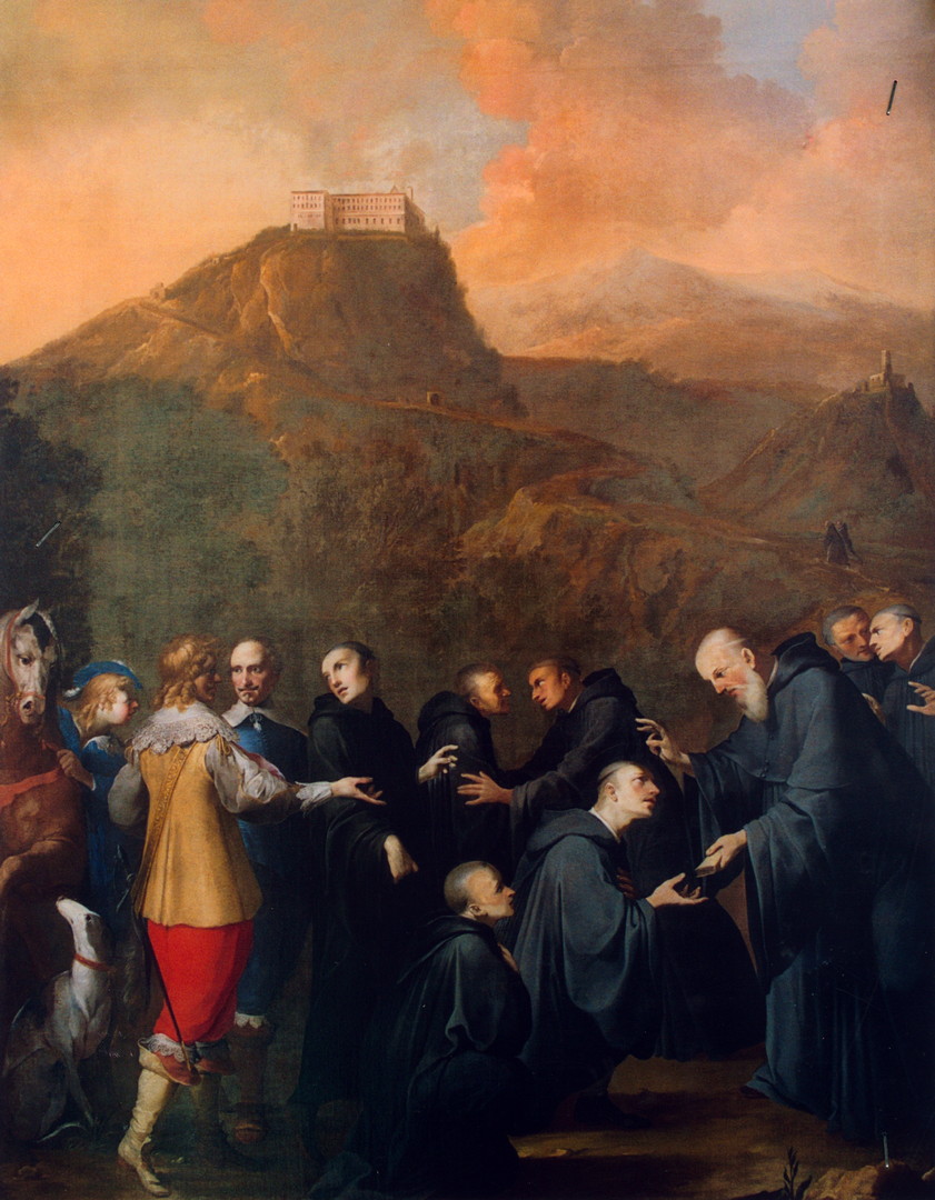 Le peintre Giovanni Fiammingo, nom italianisé de Jan Schepers, originaire d’Anvers, semble être présent à Pérouse depuis 1579, date à laquelle il a obtenu la citoyenneté. Spécialisé dans la création de paysages (voir, entre autres, les quatre grandes vues de la salle rouge du Palazzo dei Priori), il travaille comme peintre de fresques à San Pietro à partir de 1592. Il travaille souvent aux côtés de la figuriste pérouse Scilla Piccinini. Il est récompensé par les moines pour « la peinture de la façade au-dessus de la voûte de l’église » et pour un « tableau sous la sacristie » représentant un miracle de Saint Benoît. Sur le fond de paysage de la toile, aujourd’hui dans la chapelle du sacrement, à l’origine dans le réfectoire du monastère, on peut clairement distinguer l’abbaye de Montecassino.