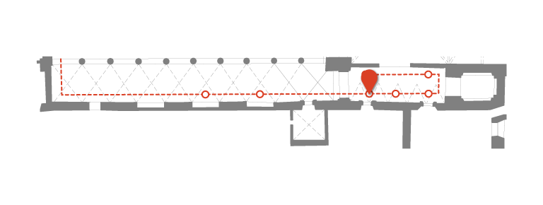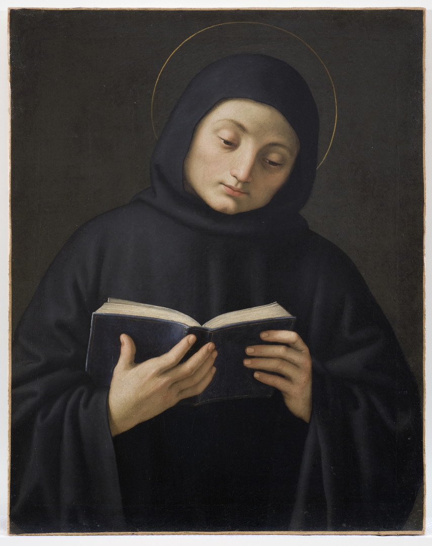 The Church of San Pietro is a genuine treasure trove of the works of Sassoferrato. The artist painted numerous copies of famous works by Perugino and Raphael, as well as works of his own invention. The small canvas of Saint Maurus is a copy of a predella panel of the large polyptych by Pietro Perugino (1495-1500), which was taken apart following 1591 due to renovation work on the Church. The painting, currently placed above the door of the right aisle leading toward the monastery, was originally in the abbot’s apartment. A document for the purchase of the canvas of Saint Maurus, dating from June 1649, offers a terminus ante quem for its execution.