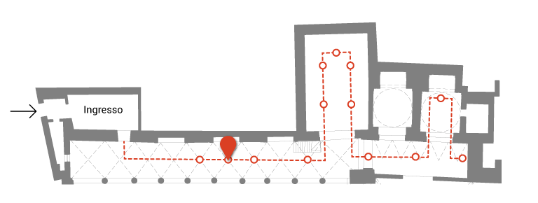 As evidenced by various payments made to him, the sculptor Giovanni Teutonico was responsible for “il crocifisso bello?, the “beautiful crucifix” that was originally placed in the middle of the church. His commission for this work was due to the attention of the abbot Gaspare Giordani from Pavia. This sculptor from the North specialized in wooden crucifixes with particularly expressive features, which often included theatrical elements, such as moveable arms, a protruding tongue and a small bag in the rib cage for blood that spilled. Giovanni Teutonico was in Umbria for a long time, and established a large and well-organized workshop. He is known to have been active in Terni, from 1482, and in Norcia in 1484. His work is found in other cities in Umbria, such as Assisi, Foligno, Spello, Bevagna, Trevi, and Narni, as well as surrounding regions, such as the Marches, Lazio, and Abruzzo.